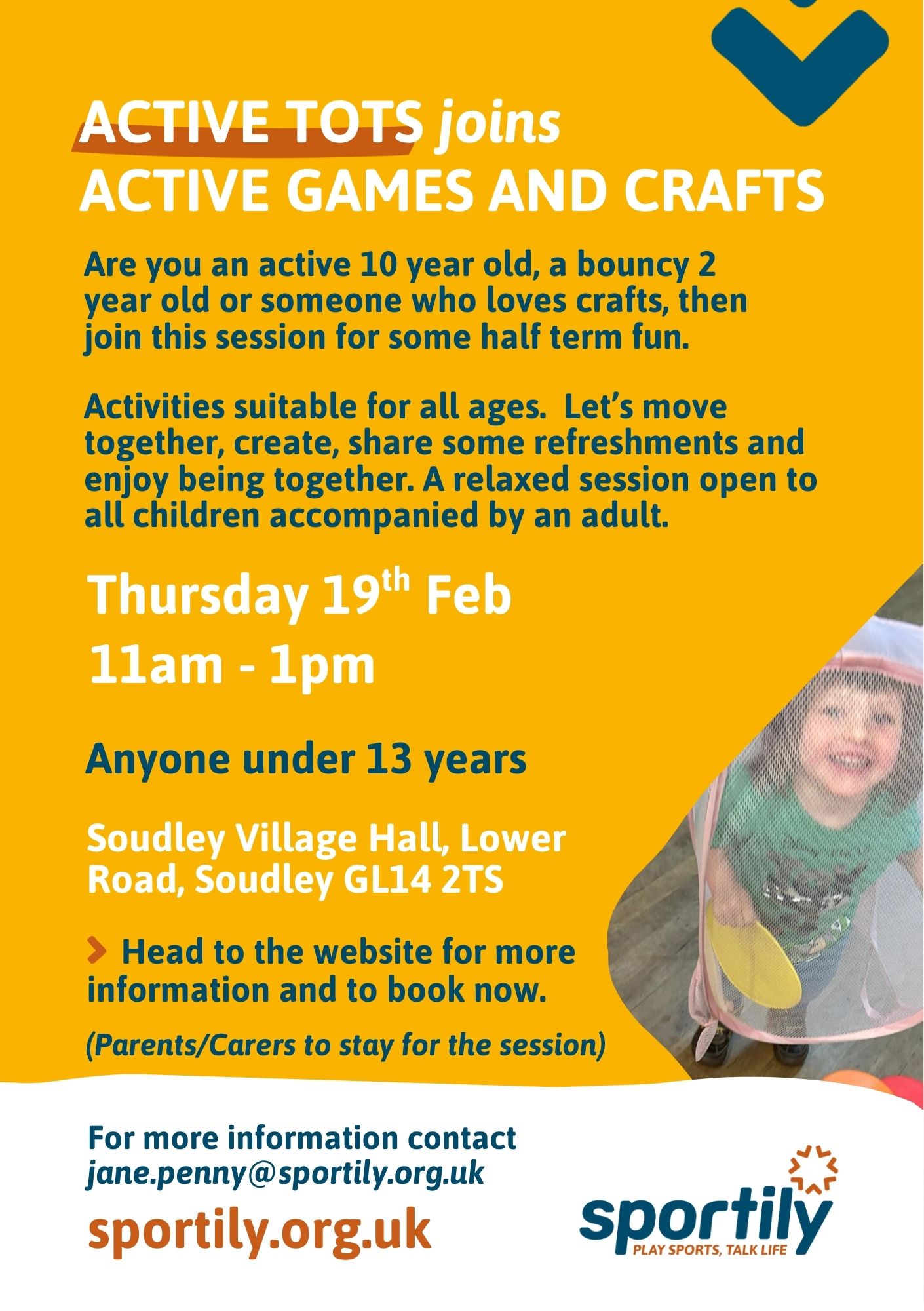 Join us for some active games and crafts at the Soudley Village Hall.