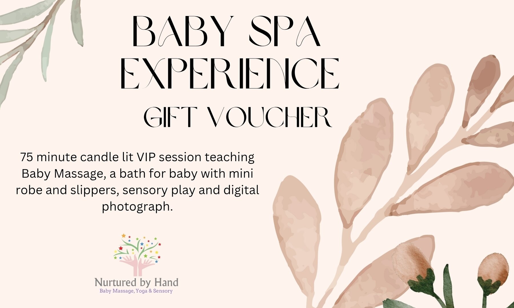 Gift voucher for a Baby Spa Experience suitable from birth to 9 months.