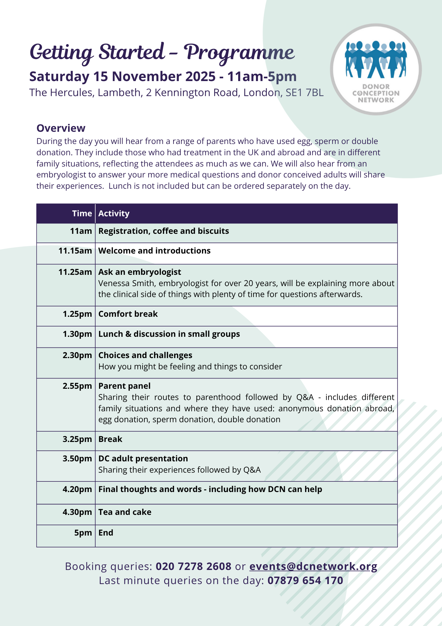 ๐๐ณ๐ณ๐ผ๐ฟ๐ฑ๐ฎ๐ฏ๐น๐ฒ ๐ฎ๐ป๐ฑ ๐ถ๐บ๐ฝ๐ฎ๐ฟ๐๐ถ๐ฎ๐น: The full day costs just ยฃ75 per person or ยฃ130 per couple when booked before 25 October (ยฃ90 and ยฃ160 after that date) and the 11am start time makes it easy to get to Waterloo and home in a day. This event is a Donor Conception Network event so you can rest assured that all information will be impartial and based on our experience as a charity working with donor conception families for the past 30+ years.