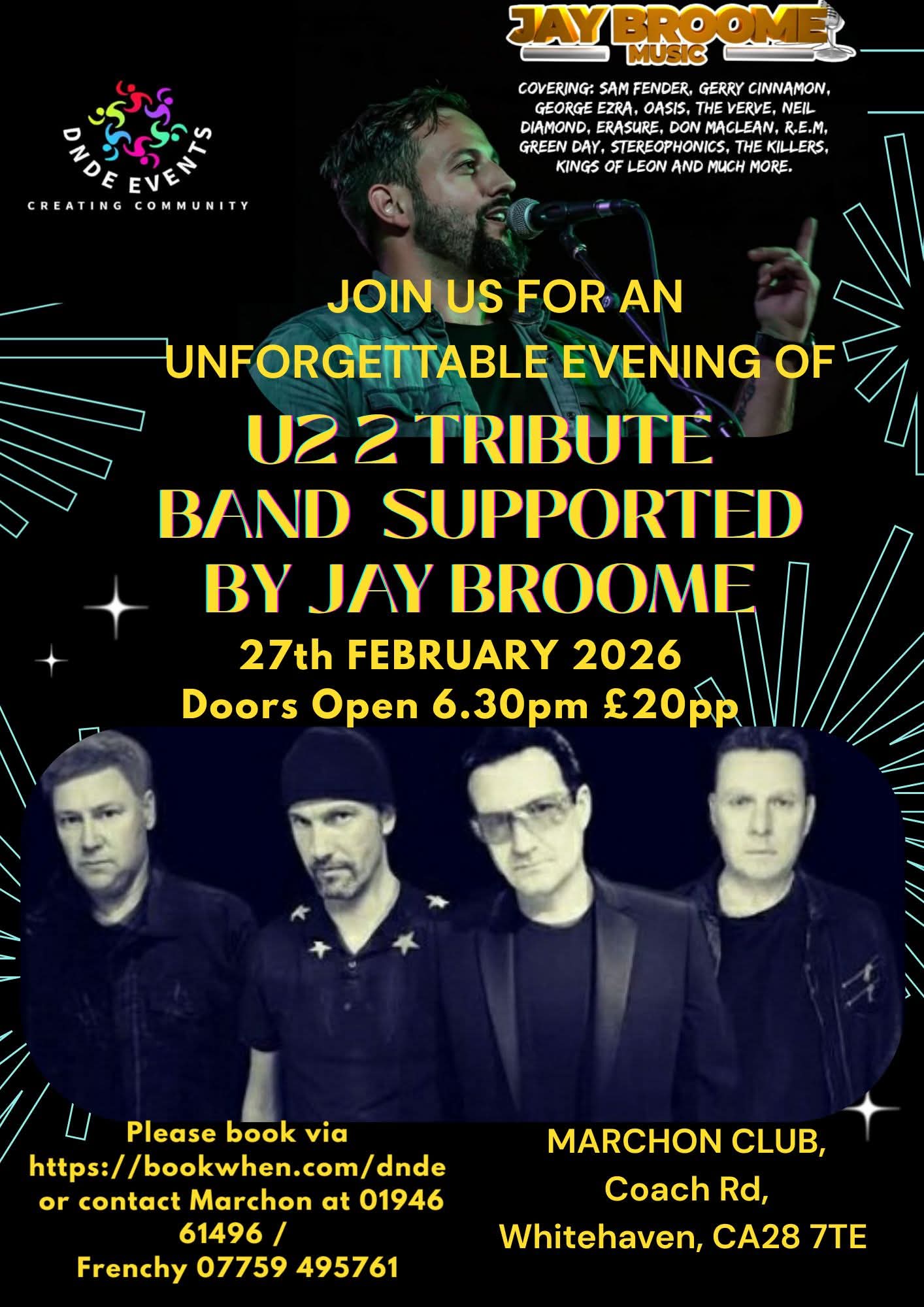 ๐ค๐ต EXPERIENCE the ICONIC U2 SOUND by U2 2 and DANCE AWAY to JAY BROOME'S UPBEAT VIBES at the MARCHON CLUB, WHITEHAVEN - It is going to be a LOUD, PROUD, SING-YOUR-HEART OUT EVENING!!๐ค๐ถ