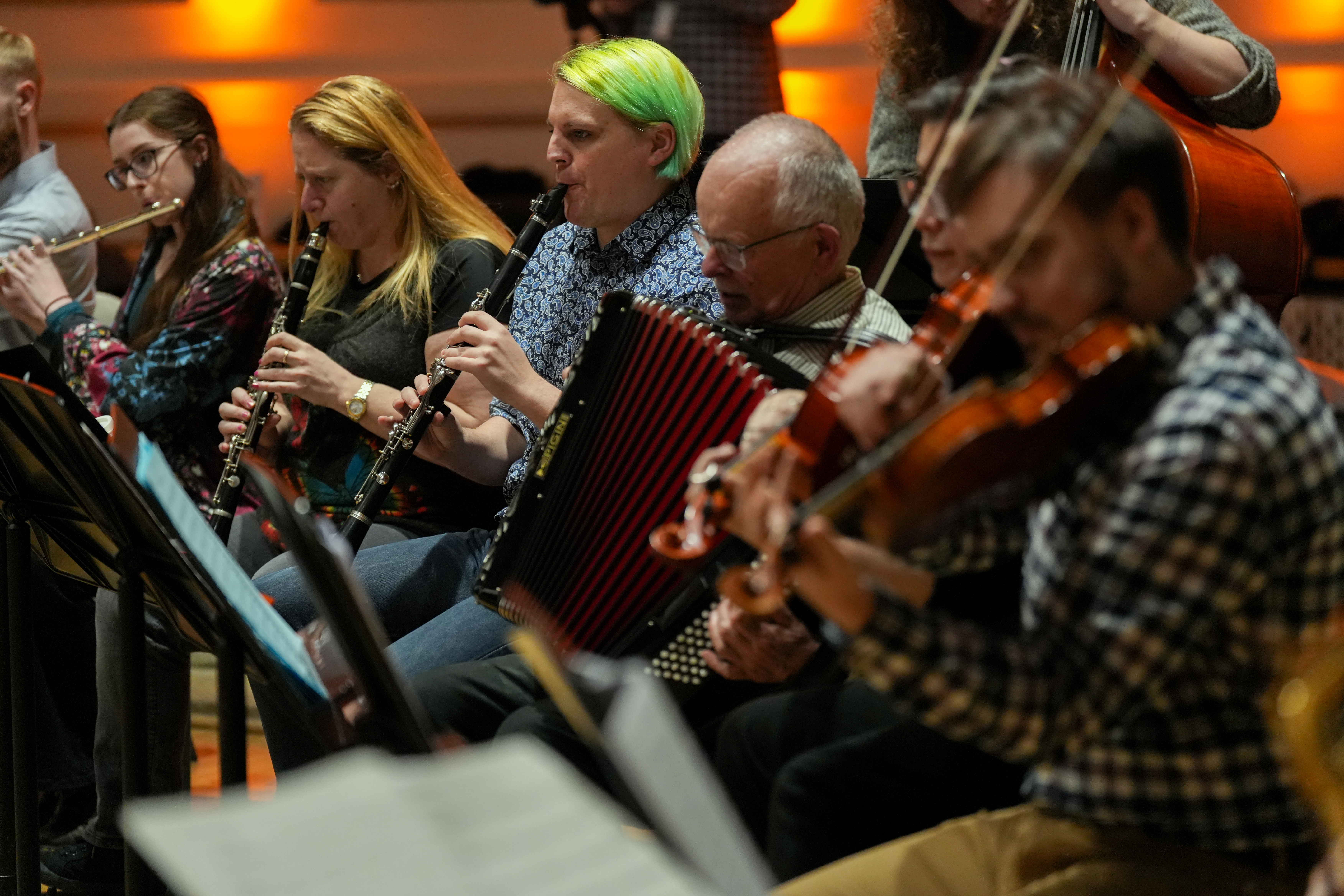 In this imagined meeting-of-worlds gig theatre, the musical fusion of Jewish Klezmer and Irish Trad is explored in all its joy, melancholy, love, sadness, and infectious danceability; although perhaps discordant on first hearing, Amid the Mirk Over the Irk explores the natural and quirky points of intersection between these 2 deeply personally significant folk dance musics and - by association - their cultures, through their 7-8 piece folk-fusion band, short stories, and evocative visuals. It explores the intrigue, awkwardness, and respect of unfamiliar cultures sharing the same space.
