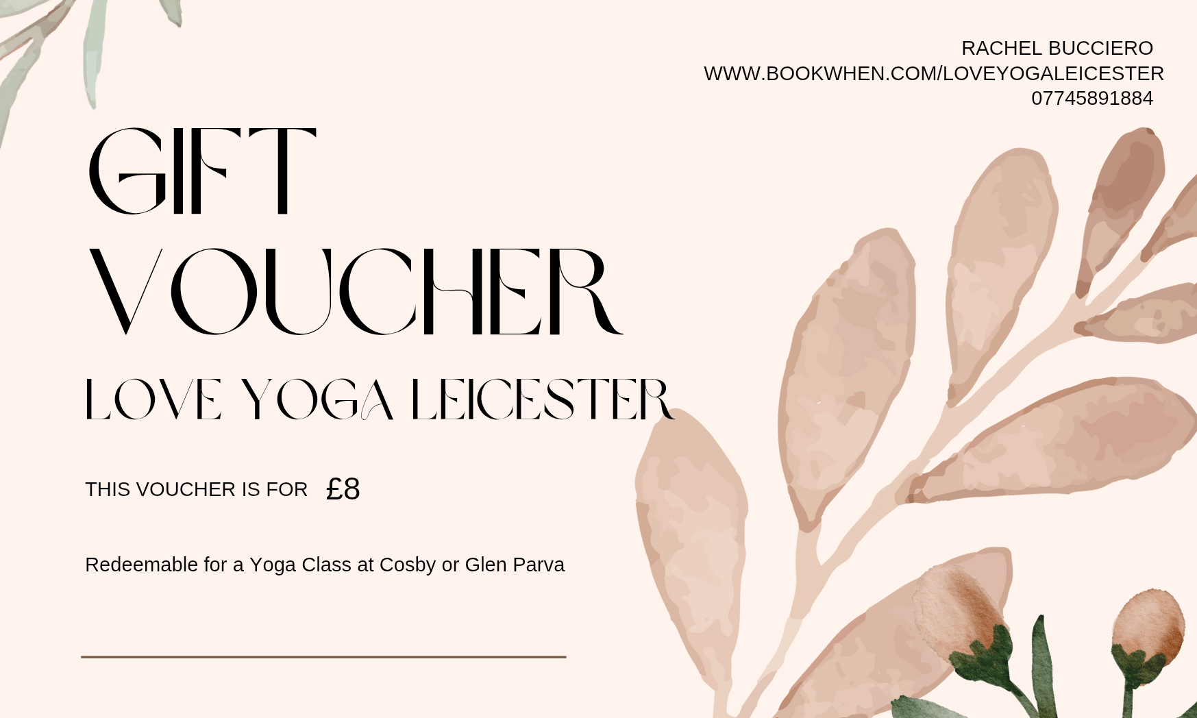 An £8 voucher is perfect for a class at Glen Parva Memorial Hall, or Cosby Village Hall.