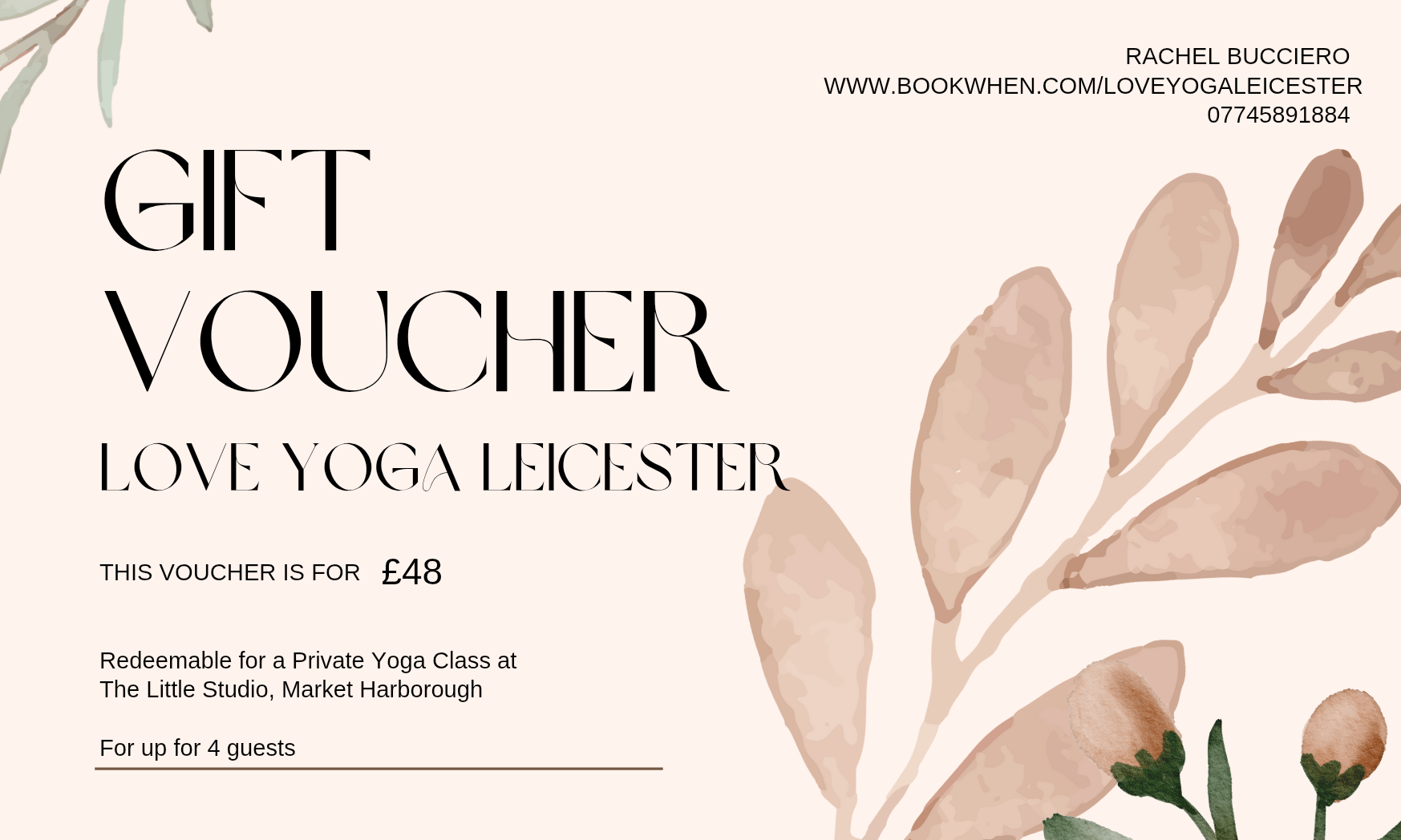 This voucher can be used for a private Yoga Class, curated totally to your needs. Held in the beautiful setting of The Little Studio in Market Harborough.