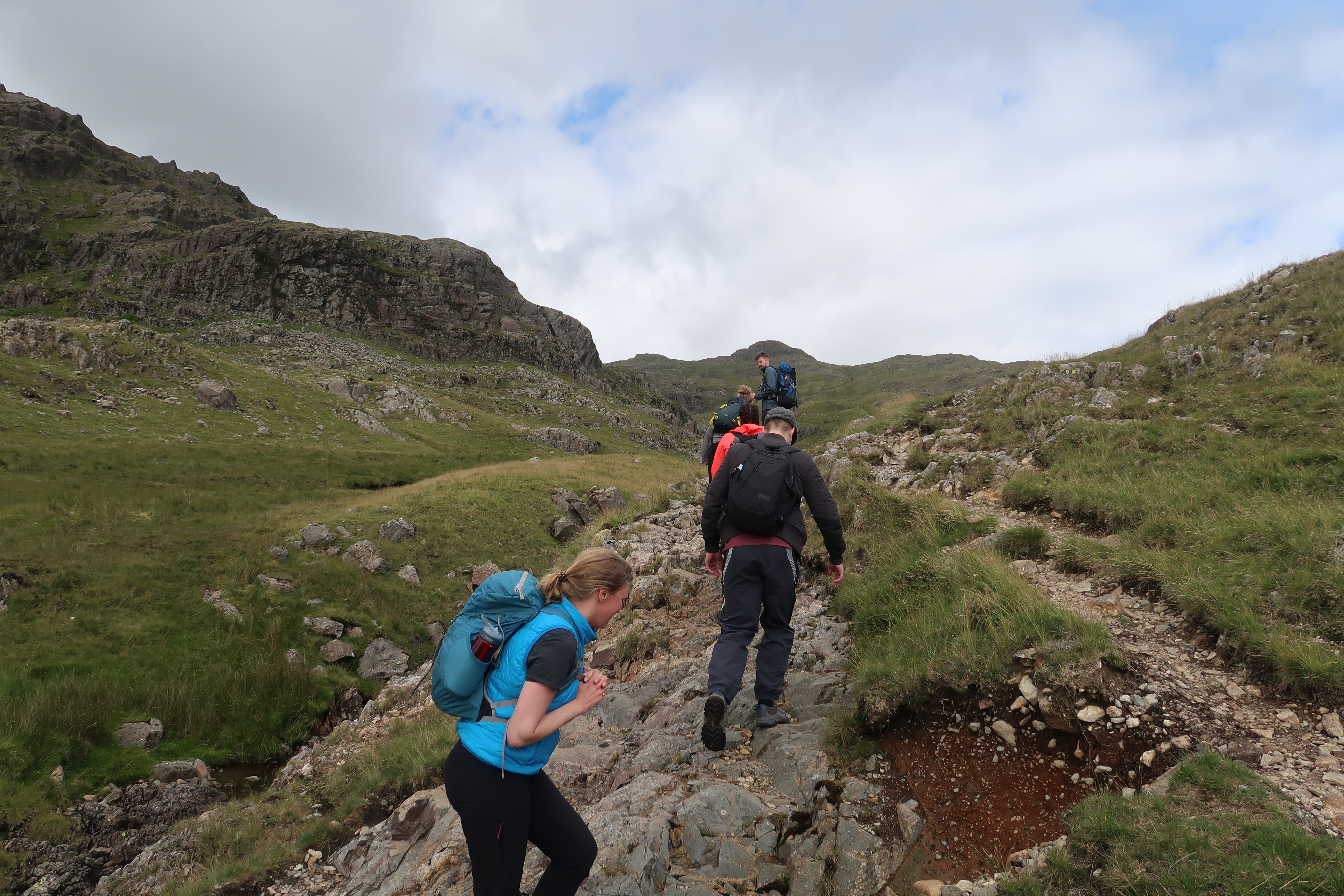 When you think about the Lake District, this is the postcard picture of the Langdale Pikes. Starting in the Great Langdale Valley at New Dungeon Ghyll we will head up to Stickle Tarn, a stunning tarn nestled among the mountains. Once there we will make our way around and up to Pavey Ark, Pike of Stickle, and Harrison Stickle. Overlooking the valley, we will head back down to Stickle Tarn following the rushing beck.