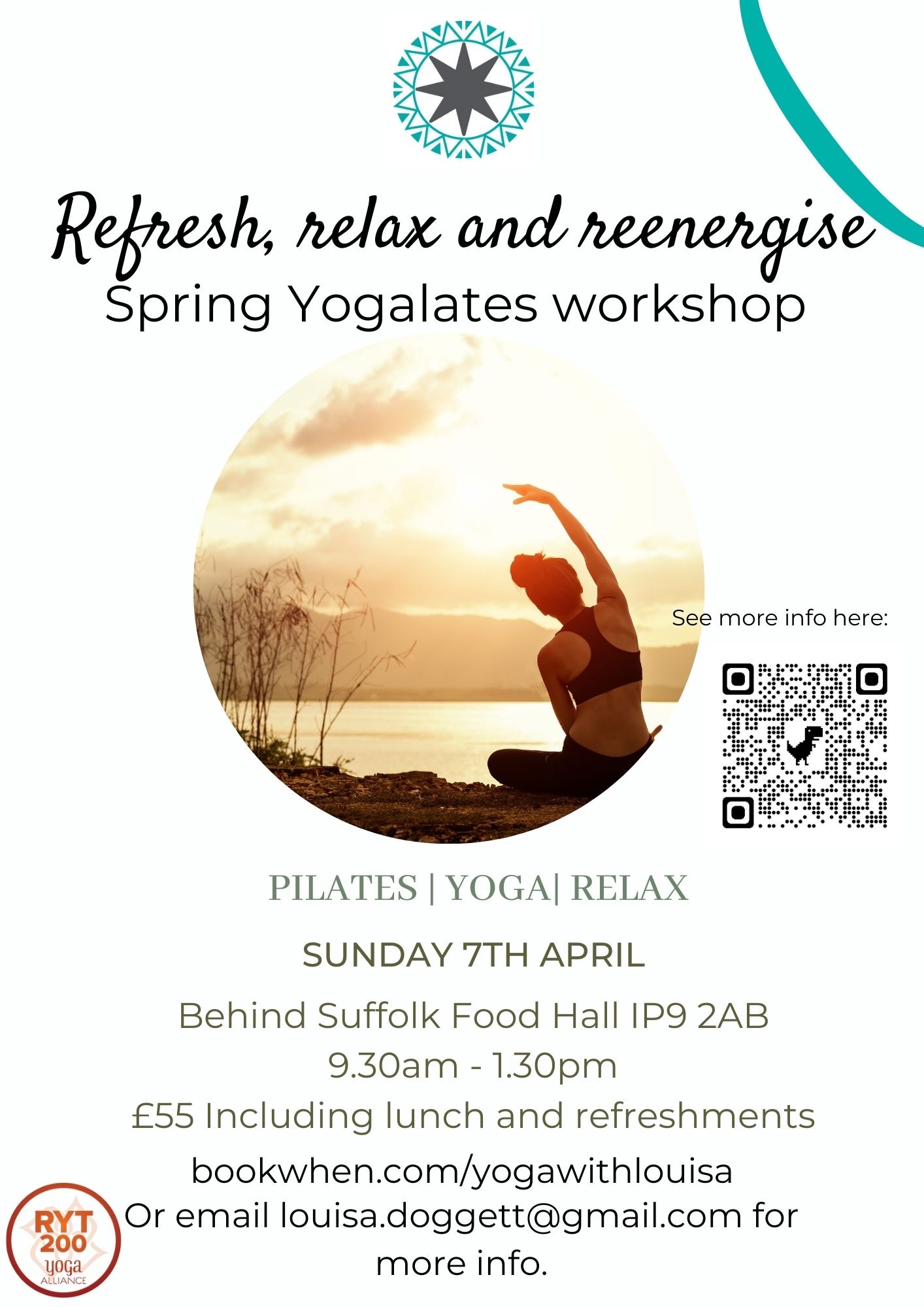 We are so excited to be offering this chance to spend some time relaxing, refreshing and re-energising with a half day workshop focusing on Pilates and Yoga, finishing off with relaxing meditation and locally sourced lunch.