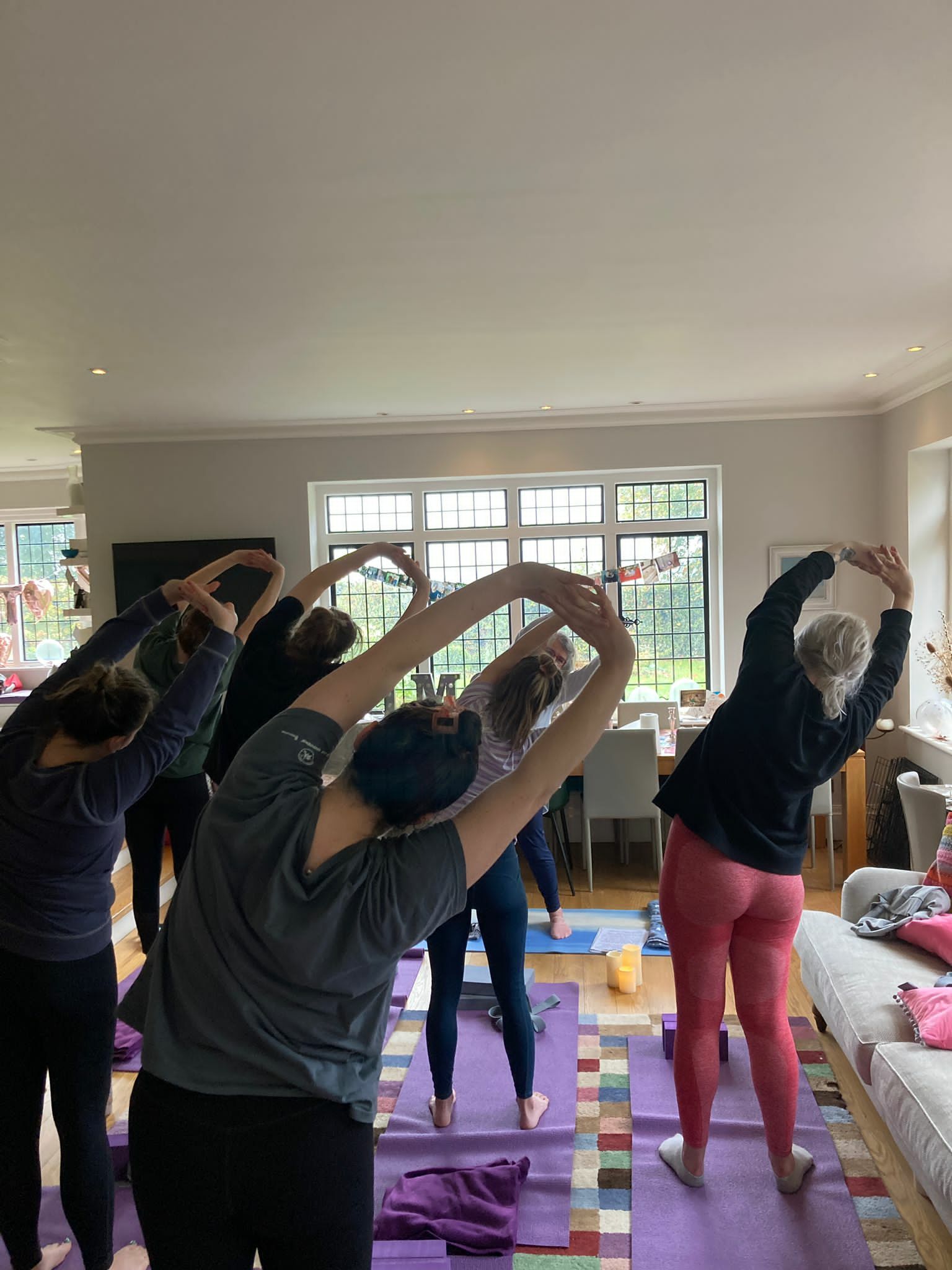 Sessions, suitable for more advanced students and beginners alike, typically include warm up stretches; different postures (Asana), adapted for every level; breathwork (Pranayama); and a short meditation (Dhyana) or lovely relaxation to finish on. I always offer modifications so everybody feels included and works safely at their own level.