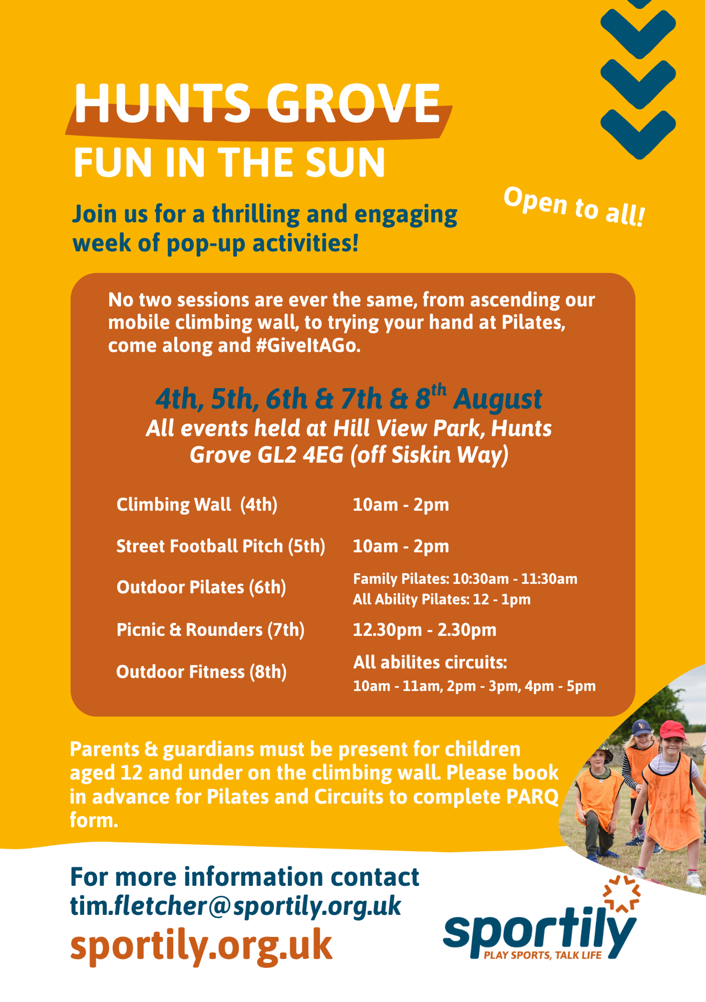 Join us for a thrilling and engaging week of pop-up sports! During the week we will doing lots of fun sports, no two sessions are ever the same, from ascending our mobile climbing wall, to trying your hand at Pilates, come along and #giveitago! The sessions are open to all, no matter your sporting ability.