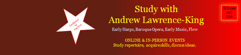 Andrew Lawrence-King is Professor of Early Harp & Continuo at the Guildhall School of Music & Drama, London; and Director of OPERA OMNIA, the Academy for Early Opera & Dance, Institute at Moscow State Theatre 'Natalya Sats'. His hobbies include marathon running, sailing, kayaking, fencing (modern epée & historical rapier) and Tai Chi. He is a qualified hypnotist.