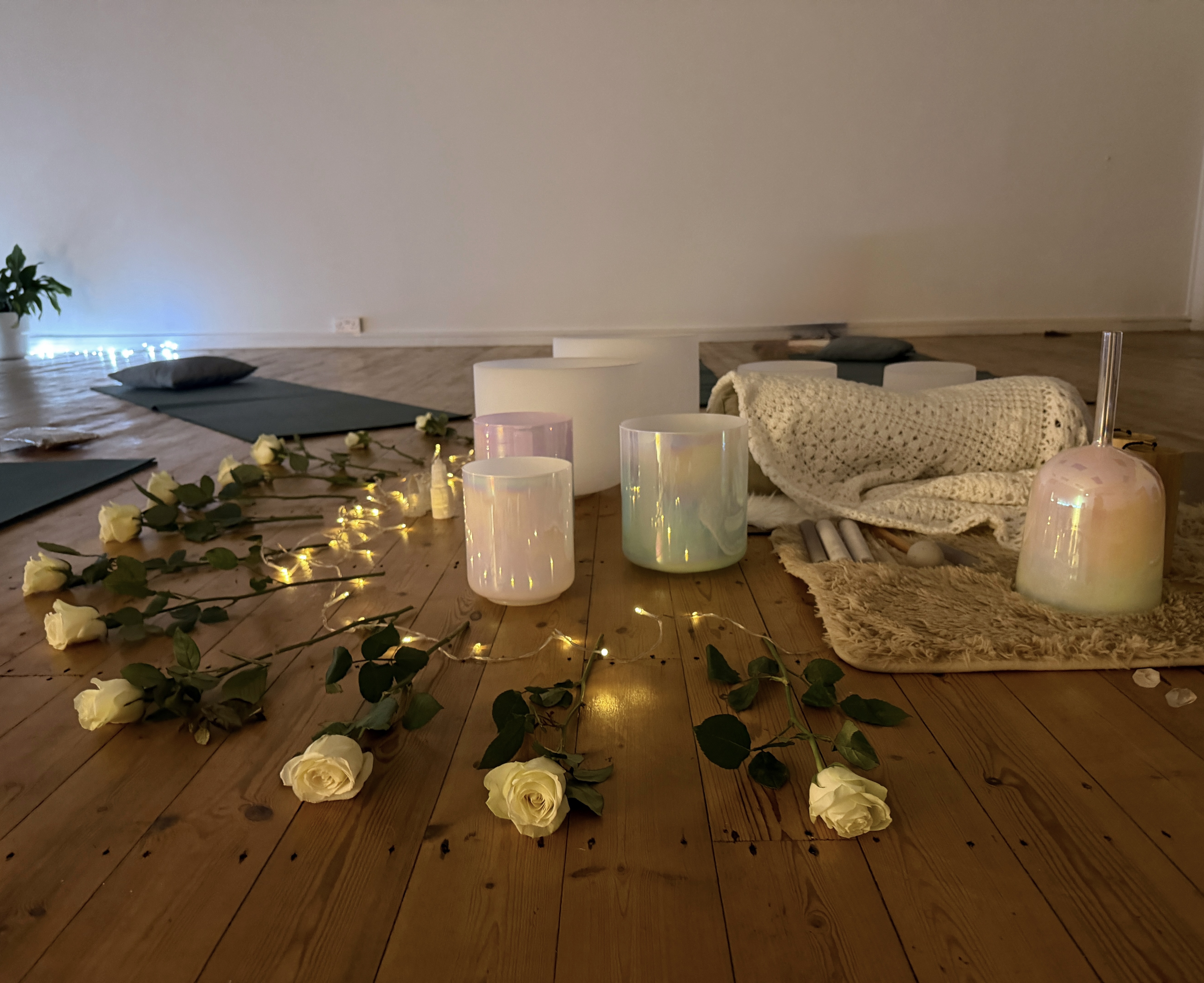 On arrival, you’ll get yourself nice and cosy, ready to be bathed in the sound of the crystal signing bowls. You’ll be treated to a short, guided mediation to help you relax down and get ready to experience the sound of the bowls. There’s nothing for you to do but relax, drift and enjoy the soothing sounds.