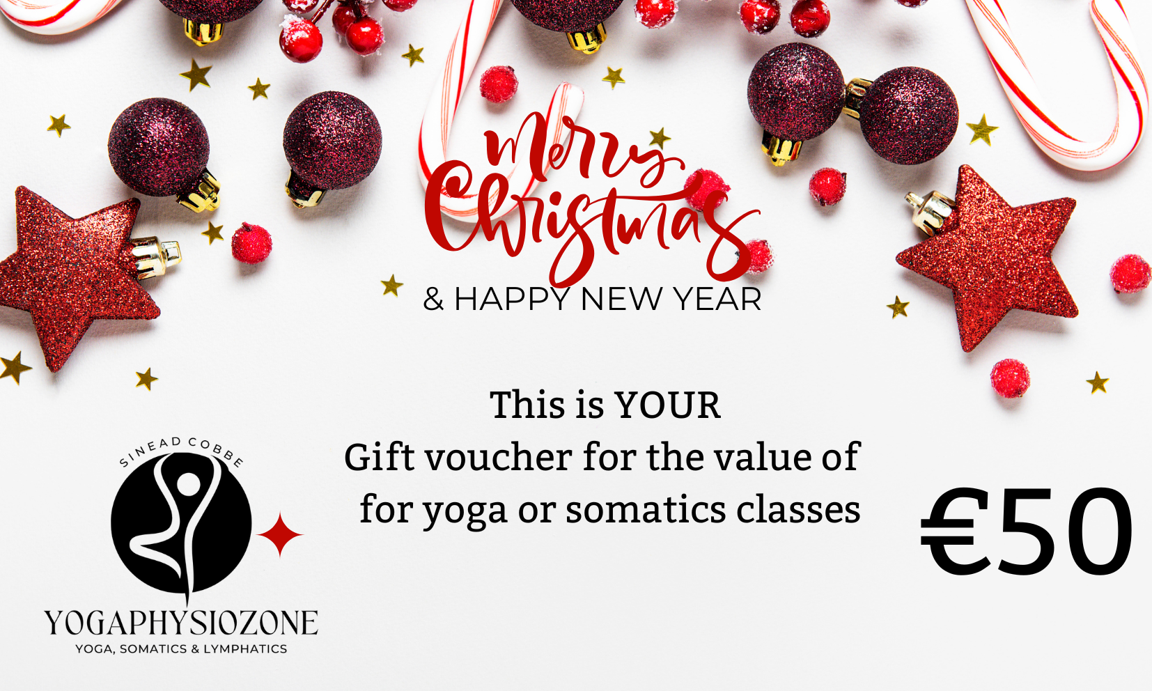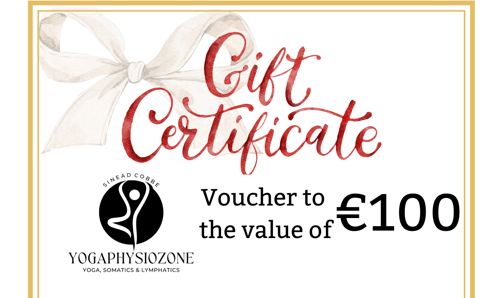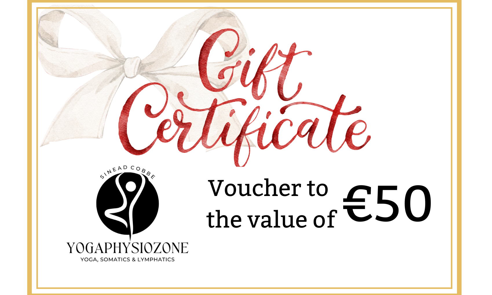 This voucher can be redeemed against the cost of booking yoga and somatics classes with Sinead Cobbe (Yogaphysiozone)
